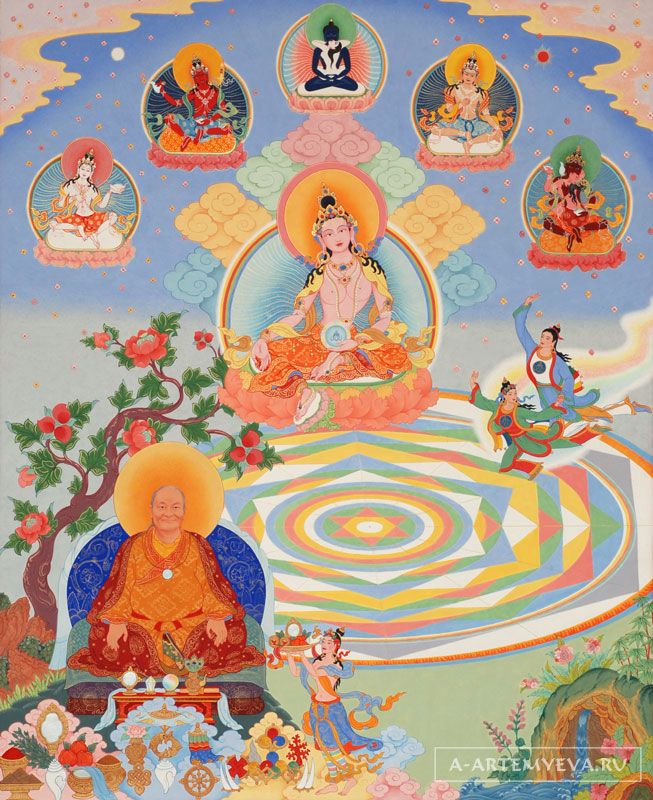 Манджушрімітра, Відьядхара переданого тіла. Нагарджунагарбха, Відьядхара мови. Хумкара, Відьядгара мислення. Вімаламітра, Відьядхара Якостей. Прабхахасті, Відьядгара активностей. Данасанскріта, Відьядхара Мамо, Елементальні богині. Шантігарбха, Відьядхара лютої мантри. Гух'ячандра, Відьядхара поклонінь.
